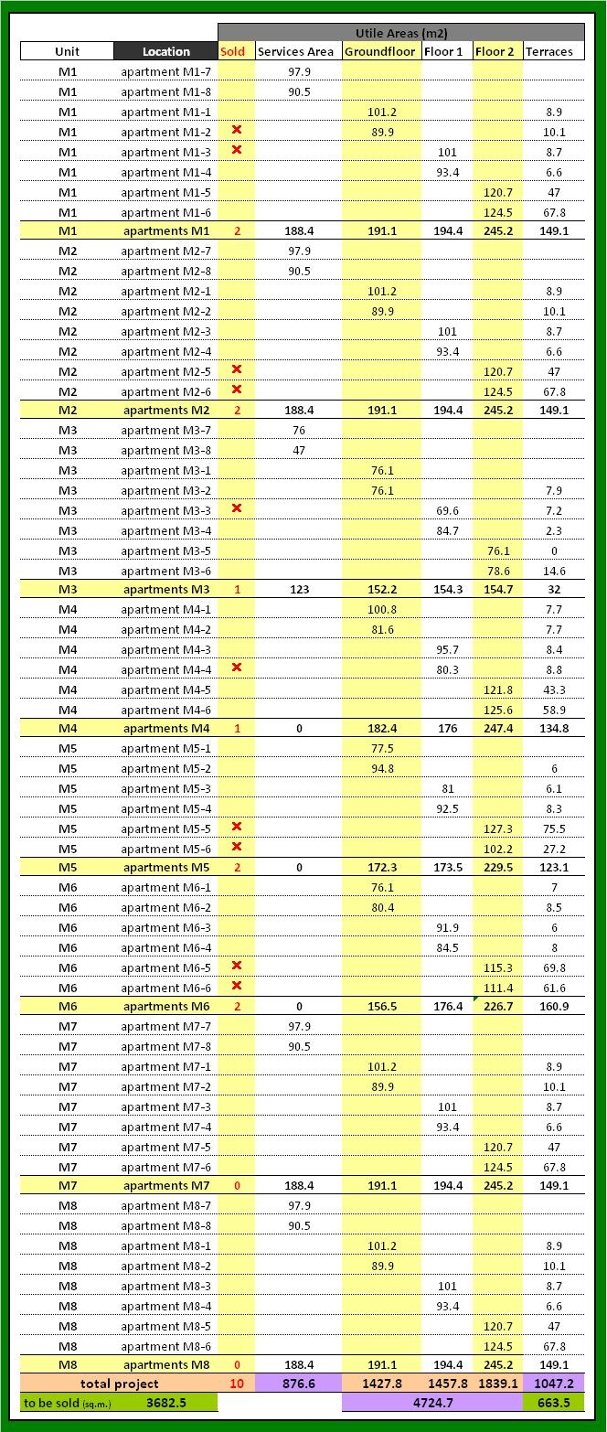 - Utile are for apartments varies from 70 to 120 sq.m.
